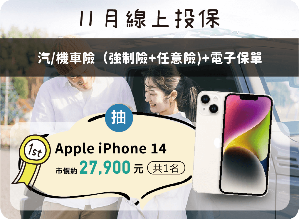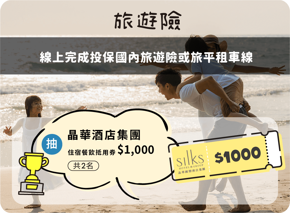 投保明台產險,線上投保汽/機車強制險加保任意險、旅遊險、租車險、寵物險任一險種,即獲抽獎資格。